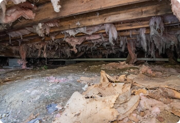 Pest activity follows the same conditions. Termites require moisture to survive and tend to establish themselves in wood that humidity has already weakened. Rodents are drawn to damp spaces with available nesting material, and degraded crawl space insulation provides both.